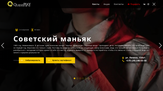 This online resource is a website dedicated to offering real-life escape rooms in Minsk, Belarus. The website features various escape room scenarios, including "The Alchemist's Castle," "Soviet Maniac," and "The Labyrinth of Vii." Users can book and purchase certificates for 1-6 players, with each session lasting 60 minutes. The website provides contact information, including phone numbers, for users to make reservations. "The Alchemist's Castle" is set in the past, where an alchemist's experiments have created temporal anomalies, allowing participants to travel back in time. "Soviet Maniac" is a horror-themed escape room set in a children's tourism camp, where strange occurrences have been happening for years. "The Labyrinth of Vii" is an otherworldly experience, where users must