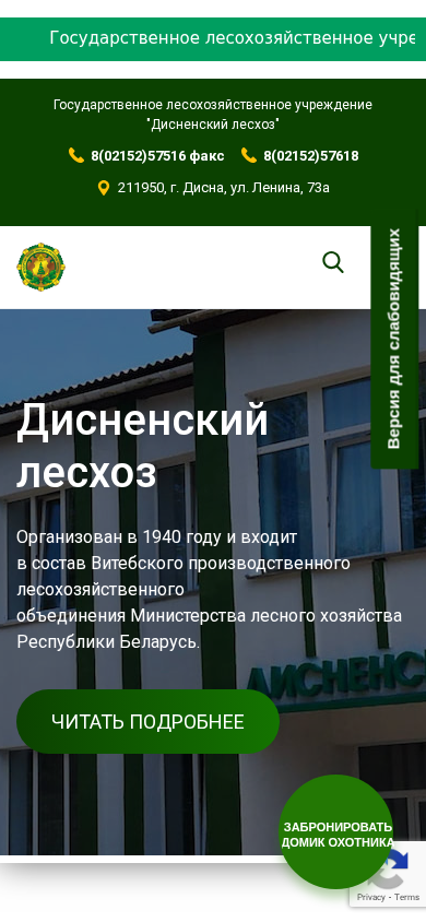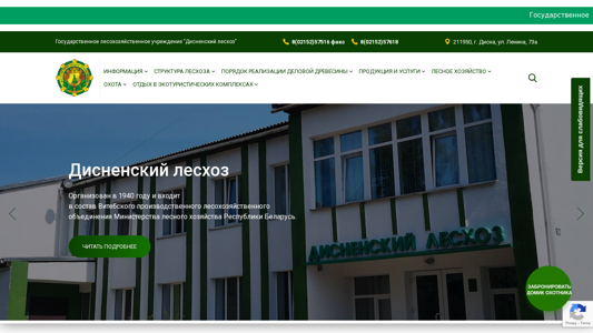 | AI-анализ | --- This website belongs to the State Forestry Enterprise "Disnenky Leshoz" in Belarus. The main page provides information about the organization, including contacts, administrative procedures, history, and structure. Visitors can find details about the forestry industry, certifications, and anti-corruption activities. The site also offers services for hunters, such as booking a hunter's cottage, information on hunting exams, and hunting-related goods and services. Other product and service offerings include auto transportation, wood, forest materials, and various forms of wood processing. The site also contains information on vacation opportunities in eco-touristic complexes and forest restoration efforts. |