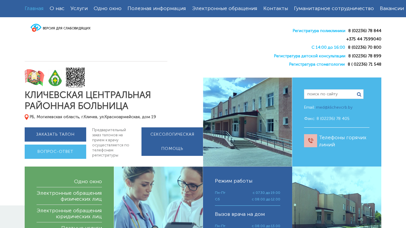 | Название / Заголовок | УЗ Кличевская ЦРБ | Главная |