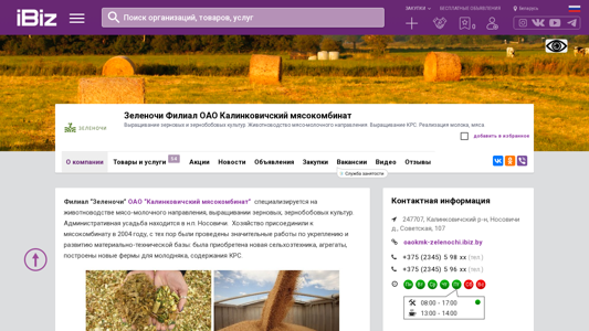 | AI-анализ | This website is for the Zelenochi Branch of OAO Kalinkovichsky Meat Combine, specializing in crop and livestock farming with a focus on dairy and beef cattle production. The address and administrative headquarters are located at Sovietskaya 107, Novosichy village. The farm was incorporated into the meat combine in 2004 and since then significant improvements have been made to the material and technical infrastructure through the acquisition of new agricultural equipment, machinery, and the construction of new livestock facilities for young animals and dairy cattle. The farm produces and sells dairy products, beef, grains, and legumes, with the primary goal of increasing agricultural production, labor productivity, and profitability while ensuring beneficial business relationships and reasonable prices. The location and usage information are provided. |