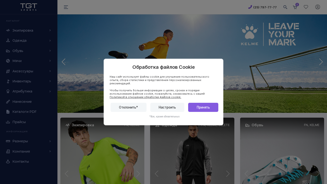 | SEO-описание | Большой ассортимент футбольной, баскетбольной, волейбольной, гандбольной формы брендов KELME и FN в магазине интернет-магазине - S-TGT.BY. Бутсы, футзалки, шиповки, кроссовки, борцовки и т.д. |