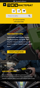 | SEO-описание | Продажа аккумуляторов покрышек и колес для авто б ✅ Более 45000 товаров в наличии в интернет-магазине МастерБат ✅ Купить аккумуляторы, автошины, диски с доставкой по Беларуси ✅ Низкие цены! |