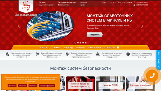 | AI-анализ | The web project "SisGlobas.by" offers security system design, installation, and maintenance services. The company specializes in video surveillance, comprehensive security systems, and fire alarm systems. They provide installation services for intercom systems and CCTV systems, with a five-year warranty. The website features a price list and contact information for their services in Minsk and Belarus. The company also offers installation of various video surveillance equipment, including the Trassir TR-D9161IR2 panoramic camera, with a fish-eye lens and infrared illumination. They provide services for the installation, maintenance, and project design of weak current systems. Their services are available 365 days a year. The website includes a catalog, customer reviews, and contact information. The company offers security control systems for protecting buildings around the clock, as well as video surveillance on demand. They provide |