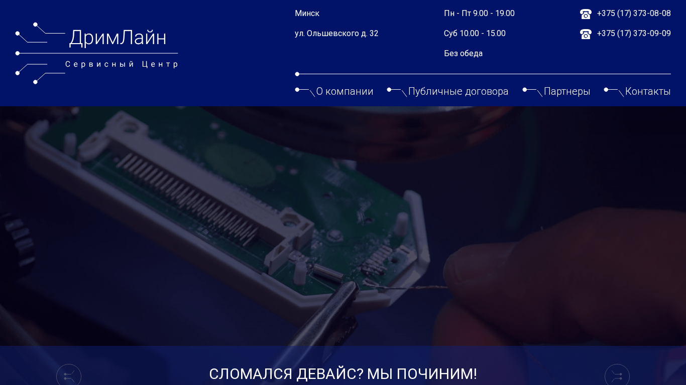 | SEO-описание | Сервисный центр Дримлайн. Ремонт телефонов, планшетов, телефонов, плееров, радар-детекторов, регистраторов и иной электроники в Минске. |