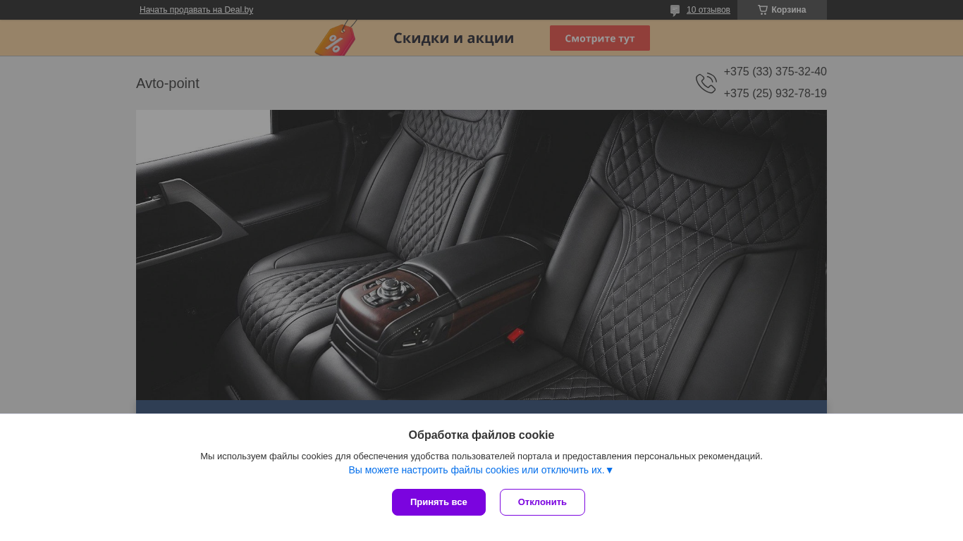 | AI-анализ | --- This website belongs to Avto-point, a company based in Minsk, Belarus, specializing in the restoration and improvement of automobile interiors and exteriors. The website provides contact information, including phone numbers for sales and inquiries, and a wide range of services and products. The offerings include various types of upholstery materials, such as artificial leather and microfibre, as well as sound insulation, toning, and various types and thicknesses of vibration and sound insulation materials. The company is an importer and offers nationwide and international delivery. The website features a catalog with detailed information and prices for all available products and services. |