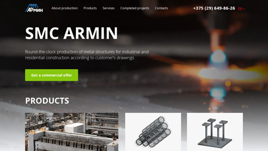 | AI-анализ | This online resource, Armatura.by, is a metal structures production company website. The title is "Home - СМЦ Армин" and the description is absent. The top keywords include "metal," "production," "work," and "cutting," among others. The website offers services such as welding, plasma cutting, and metal cutting, and produces metal structures for both industrial and residential construction. Customers can send drawings for calculation and quote requests, and orders can be placed with flexible deadlines. The website boasts modern European equipment and a large production capacity, and has a history of working with large construction and production holdings from Belarus and other countries. |