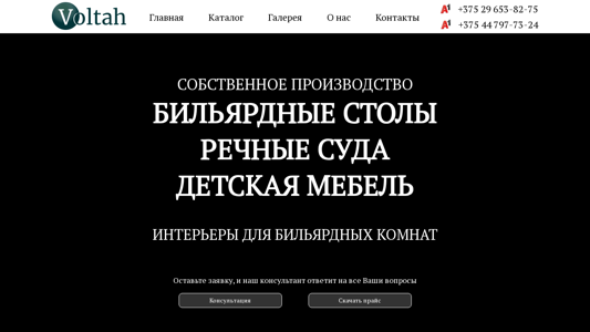 | SEO-описание | Волтах является самостоятельной организацией, которая предлагает свои услуги по производству мебели и лестниц по индивидуальным проектам, бильярдных столов и моторных яхт катамаранного типа для рек и внутренних водоемов. |