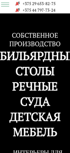 | AI-анализ | The portal offers individual production of furniture, ladders, billiard tables, and motor yachts of catamaran type for rivers and internal water reservoirs. The product range includes billiard tables, children's furniture, and interior designs for billiard rooms. Customers can leave a request for consultation and download a price list. Billiard tables are available in various sizes, from 6 to 12 feet, made of oak or birch, and with different color palettes and suede options. Prices start from 5,278 RUB for a 6-foot table with a birch border. Other models and sizes have varying prices based on the type of wood and table dimensions. |