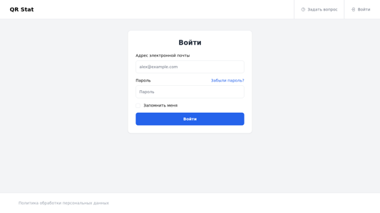 | AI-анализ | --- This online resource, titled "Система учета рабочего времени на основе QR-кодов" (QR Stat), offers an efficient solution to automate attendance tracking and manage absences. Setup takes only 10 minutes, and the system does not require expensive equipment or IT staff for operation. Users can access the service by providing their email address and password, or by checking the "Remember me" box to bypass the login process. The website also includes a "Politika обработки персональных данных" (Privacy Policy) section. Keywords associated with the site include "system", "учета" (accounting), "рабочего" (working), "времени" (time), "основе" (on the basis of), "qr-кодов" (QR codes), and various login-related terms. |