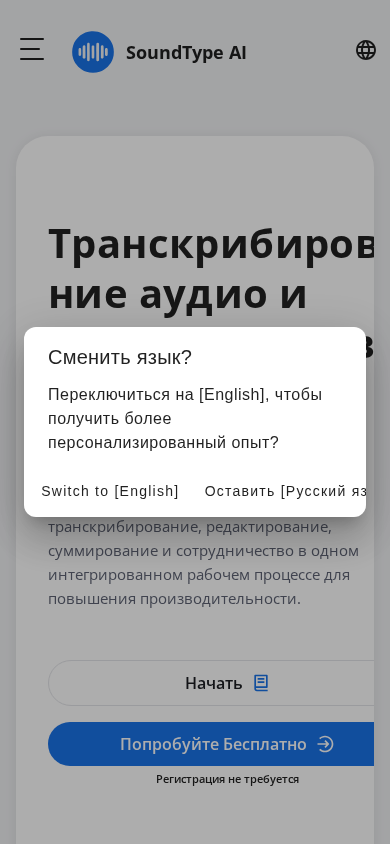 | Название / Заголовок | SoundType AI - Транскрибирование аудио в текст |