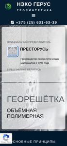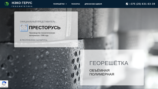 | AI-анализ | This online resource is dedicated to the sale and production of polymeric oblong geogrids, or georeeshketka, used for the formation of slopes, embankments, and the stabilization of soil. The website offers information about the company Neko Gerus, a Belarusian producer of geosynthetic materials since 1998. The georeeshketka is described as a three-dimensional cellular structure made of polyethylene and polypropylene tapes, joined together by high-strength welds. The georeeshketka is employed for the stabilization of slopes and the creation of embankments by forming a covering layer in combination with a geotextile, which ensures an even distribution of pressure on surfaces. The website mentions the availability of perforated georeeshketka, which facilitates the formation of drainage |