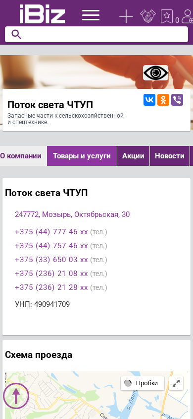 | Название / Заголовок | Поток света ЧТУП - Запасные части к сельскохозяйственной и спецтехнике. . 247772, Мозырь, , Октябрьская, 30 |