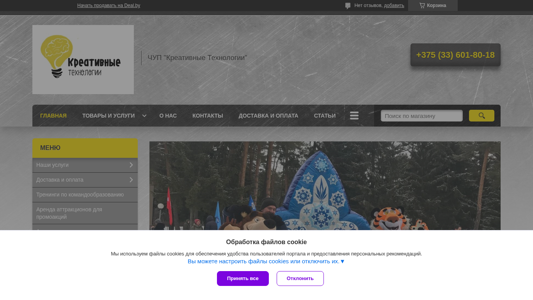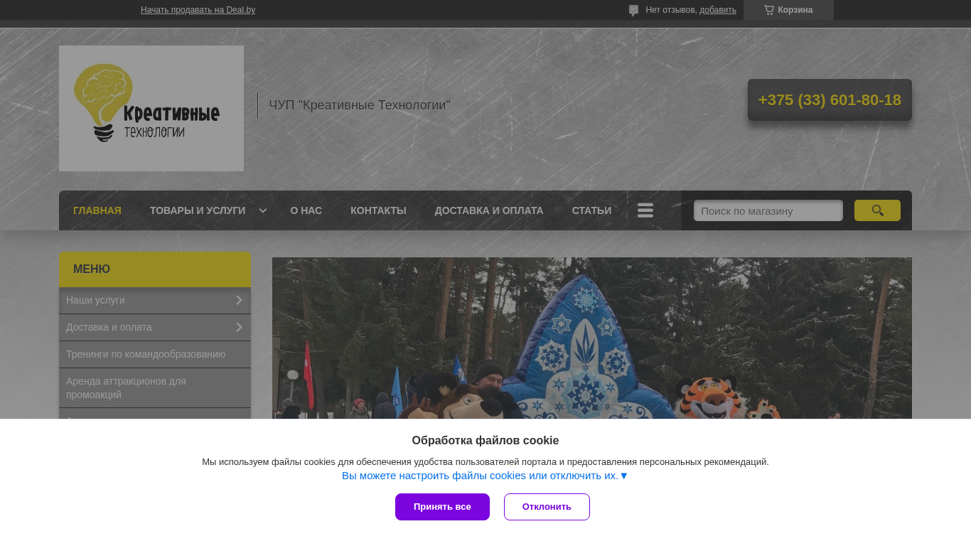 | AI-анализ | The portal kreator.by is an e-commerce platform for the Belarusian company "ЧУП "Креативные Теchnologies", offering contacts, products, and services with prices. The website features various categories: team building trainings, attraction rentals for promotional events, attraction and game rentals for celebrations, novelty photo zones and games, fan casino and raffle prize events, and children's parties. Products and services include a HeadBall football game, room rental for laughter in a yurt, pneumatic target shooting, and promo-object branding with curved mirrors. The company specializes in event organization, combining modern technologies, unique concepts, and excellent customer service. Their team has extensive experience in corporate events, exhibitions, PR actions, and team building training. The mission of the company is to inspire and connect people through unforgettable events and |