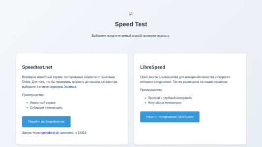 | AI-анализ | This online resource is a speed test platform that offers users two options for measuring their internet connection speed. The first choice is Speedtest.net, a globally recognized service from Ookla, where users can select Datahata servers for testing their connection to the data center. The second alternative is LibreSpeed, an open-source tool for assessing internet quality and speed, also hosted on Datahata's servers. Both services provide advantages: Speedtest.net collects telemetry data and is widely known; LibreSpeed offers a simple and user-friendly interface without data collection. Users can interpret their test results based on download speed, upload speed, ping/latency, and jitter, considering factors like network load, time of day, local network settings, and device capabilities. For optimal results, Datahata recommends users to run tests at different hours, use a wired connection if possible, close other band |