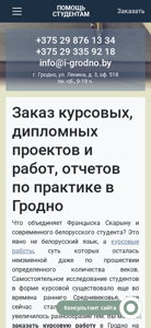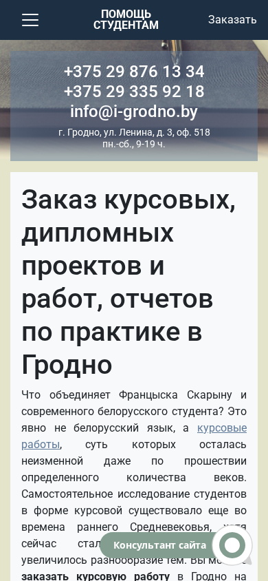 | SEO-описание | У нас можно заказать курсовые, дипломные проекты и работы, отчеты по практике. Помощь учащимся из Гродно и не только. Положительные отзывы, гарантии и сопровождение. |