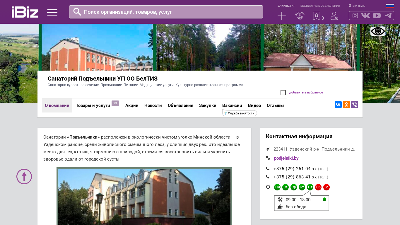 | Название / Заголовок | Санаторий Подъельники УП ОО БелТИЗ - Санаторно-курортное лечение. Проживание. Питание. Медицинские услуги. Культурно-развлекательная программа.. 223411, , Подъельники д. |