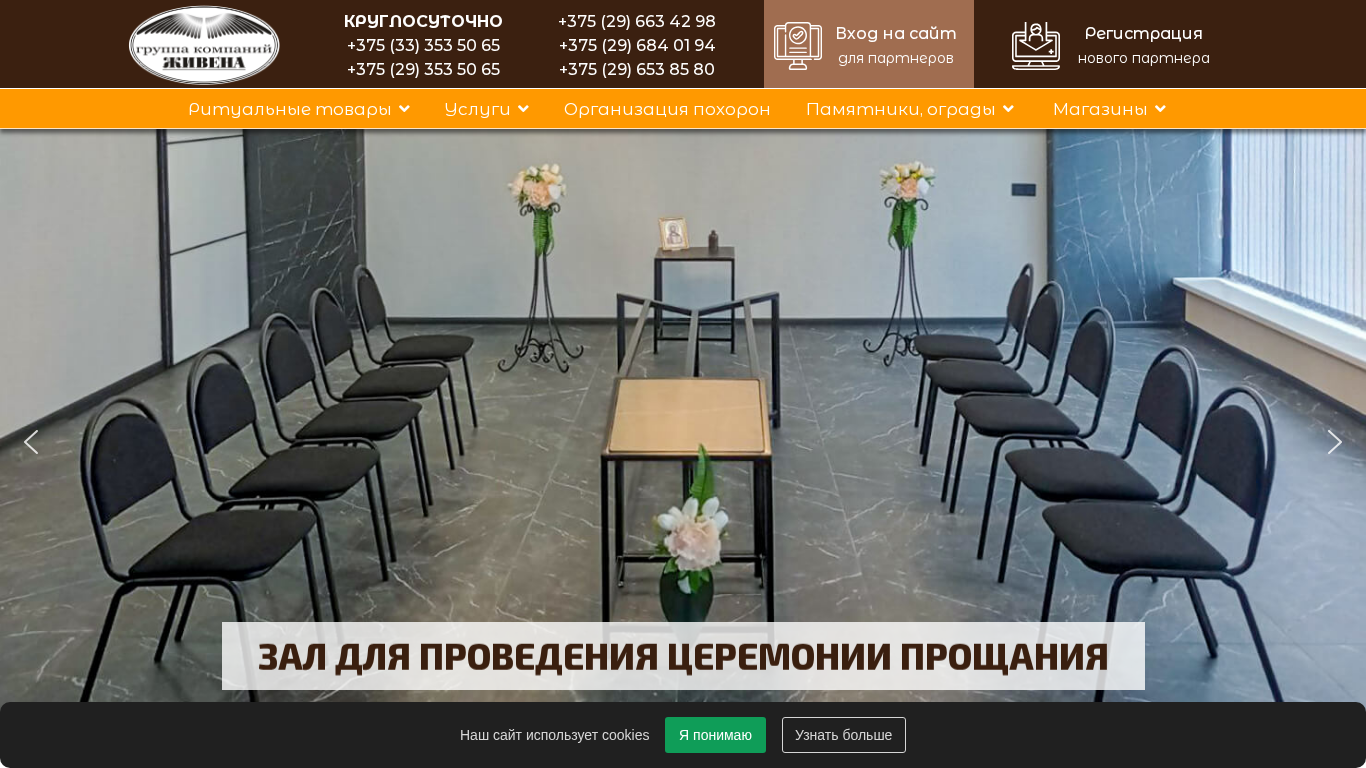 | SEO-описание | Ритуальные услуги Узда, Столбцы, Несвиж, Копыль, Червень. Ритуальные товары. Похоронное бюро. Ритуальные товары оптом. Организация похорон. Живена |