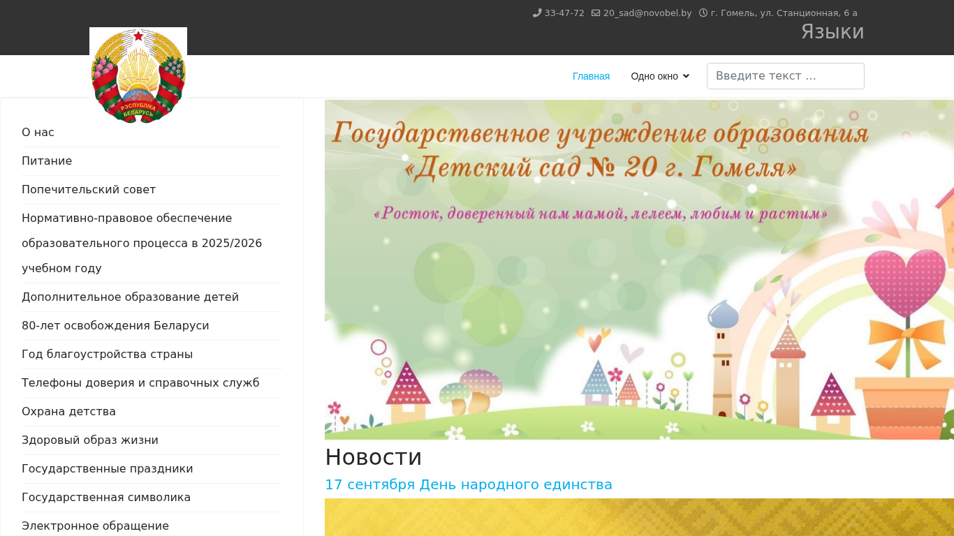 | AI-анализ | The portal 20sad.by is a website dedicated to providing information related to administrative procedures, normative legal acts, and the schedules of specialists and administrators in a childcare institution located in the city of Homel, Belarus. The homepage includes sections for contact information, accessibility features, and a search function for users to find specific content. Keywords associated with the site include 'works', '2025', 'text', 'principal', 'Homel', 'normative', 'electronic application', 'procedures', 'administration', 'uplift', and '33-47-72'. The site also offers information on various events, news, and educational initiatives taking place at the institution. The contact information for the childcare institution is provided, along with accessibility features for users with disabilities. The site is operated under the domain 20sad |