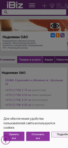 | AI-анализ | The website is for the agricultural cooperative 'Наднеман ОАО' located in Могильно аг., Школьная, 26, Uzden district, Minsk region, Belarus. The company specializes in grain cultivation, corn, livestock farming with a focus on meat and dairy production, and the sale of milk. The website provides contact information including phone numbers and a fax number. The business hours are mentioned as Monday to Friday from 9:00 to 18:00 without a lunch break on Saturdays and Sundays as holidays. The company is listed under the agricultural and farming category in the Yellow Pages of Belarus. |
