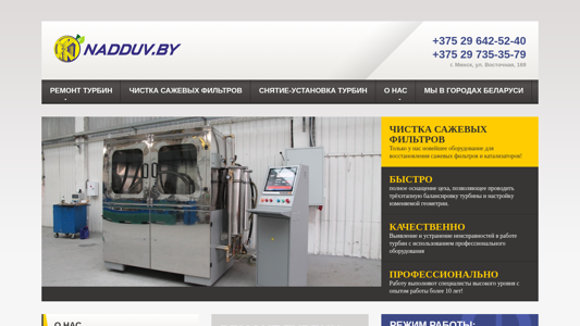 | AI-анализ | --- This website is dedicated to turbocharger repair services in Minsk, Belarus. It offers repair of all types of vehicles - passenger cars, trucks, buses, and special equipment. The repair is done with high quality, quickly, and reliably, and comes with a 12-month guarantee. The website includes information on the diagnosis of turbocharger issues, buying used turbines or getting them repaired, and the history of the turbocharger repair service in Belarus. The top keywords are related to turbocharger repair, with a focus on low prices and excellent service, as well as short repair times. The website also mentions the cleaning and washing of diesel and DPF filters, and the removal and installation of turbines. The company, Nadduv.by, emphasizes the use of the latest equipment for filter cleaning and turbocharger balancing, as |