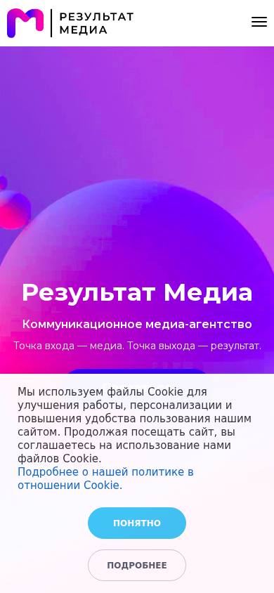 | SEO-описание | Результат Медиа — коммуникационное медиа-агентство с фокусом на результат. Мы создаём и реализуем эффективные digital-стратегии, включая таргетированную рекламу, performance-маркетинг, SMM и медийные кампании. Более 10 лет опыта ключевых сотрудников и множество успешных проектов по всей Беларуси. |