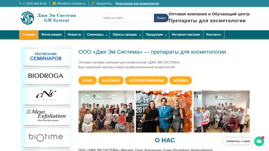 | SEO-описание | ДЖИ ЭМ СИСТЕМА - оптовая компания и обучающие центры для косметологов. Купить препараты для косметологии. Филлеры. Биоревитализанты. Пилинги. |