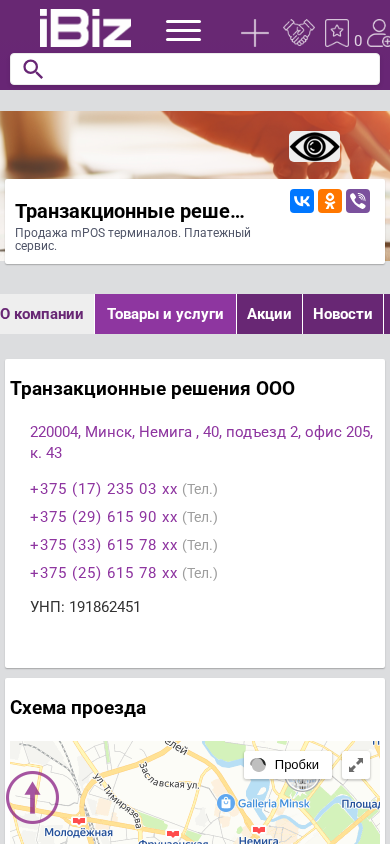 | Название / Заголовок | Транзакционные решения ООО - Продажа mPOS терминалов. Платежный сервис.. 220004, Минск, , Немига , 40, подъезд 2, офис 205, к. 43 |