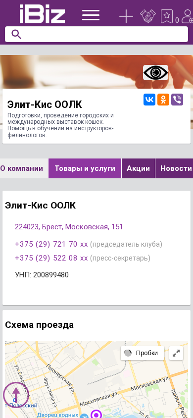 | Название / Заголовок | Элит-Кис ООЛК - Подготовки, проведение городских и международных выставок кошек. Помощь в обучении на инструкторов-фелинологов.. 224023, Брест, , Московская, 151 |