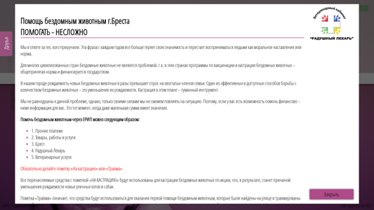 | AI-анализ | --- The portal Radushnyy Lekar (Friendly Doctor) is a veterinary clinic website. It focuses on providing professional veterinary care for cats and dogs. The website offers experienced vets with regular training abroad, modern diagnostic equipment such as Ultrasound and ECG, and a range of laboratory tests including blood analysis, urine and stool tests, spermograms, cytology, histology, and bacteriological and parasitological research. The clinic aims to diagnose and treat animals effectively and efficiently, with a personalized approach. Each animal is assigned a dedicated vet for round-the-clock care during treatment. The clinic also prioritizes affordable prices and democratic values. The website's principles include putting the animal's interests first, followed by the client's and the clinic's. The clinic emphasizes the importance of accurate diagnosis for effective treatment, and strives to avoid unnecessary |