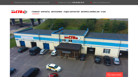 | AI-анализ | This online resource is titled "СТО ПОД МОСТОМ" and is located in Brest, Belarus, at the address Мошенского 40. The website provides information about an auto service center offering various services such as diagnostics and repair for different car brands, using modern equipment in accordance with the manufacturers' regulations. The contact details include a phone number for booking appointments, +375-29-552-70-76, and an email address, info@podmostom.by. The operating hours are from Monday to Friday, 9:00-18:00, and on Saturdays, 9:00-15:00. The auto service center, "Под моСТОм," is conveniently situated and allows customers to address car issues easily, whether near their home or workplace. The |