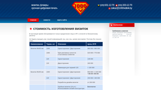 | Название / Заголовок | Главная страница | 1000vizitok.BY |