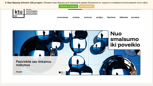 | SEO-описание | Nuo bakalauro iki doktorantūros, nuo laboratorijų iki inkubatoriaus startuoliams – KTU yra vieta, kur idėjos virsta sprendimais, o žinios – karjera. |