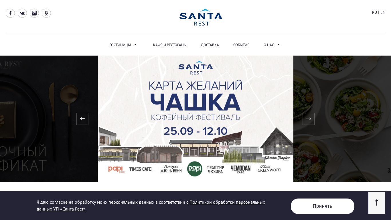 | SEO-описание | “Santa Rest” - это большая семья, которая объединяет не просто кафе рестораны и отели города Бреста, а заведения, которые являются лидерами в своём сегменте |