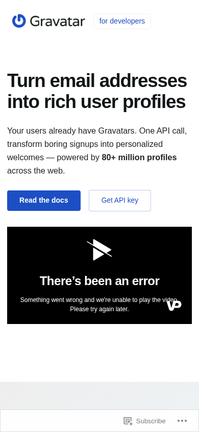 | Название / Заголовок | Gravatar For Developers – Docs, APIs, and SDKs |