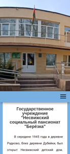 | AI-анализ | This online resource is dedicated to the Nezvizh Social Pension House "Berezka" in Belarus. The website provides information about the organization's history, mission, services, and activities. The title of the website is "Несвижский социальный пансионат "Берёзка"" and was last updated on October 1, 2025. The main sections of the website include "About Us," "Management," "Staff," "Medical Services," "Rehabilitation," "Cultural-Mass Activities," "Labor Therapy," "Occupational Health and Safety," "Trade Union Activities," "Economic Management," and "Public Life." The website also features a blog and contact information. The Nezvizh Social Pension House "Berezka" is a state institution for social services under the |