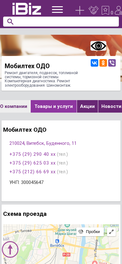| Название / Заголовок | Мобилтех ОДО - Ремонт двигателя, подвесок, топливной системы, тормозной системы. Компьютерная диагностика. Ремонт электрооборудования. Шиномонтаж.. 210024, Витебск, , Буденного, 11 |