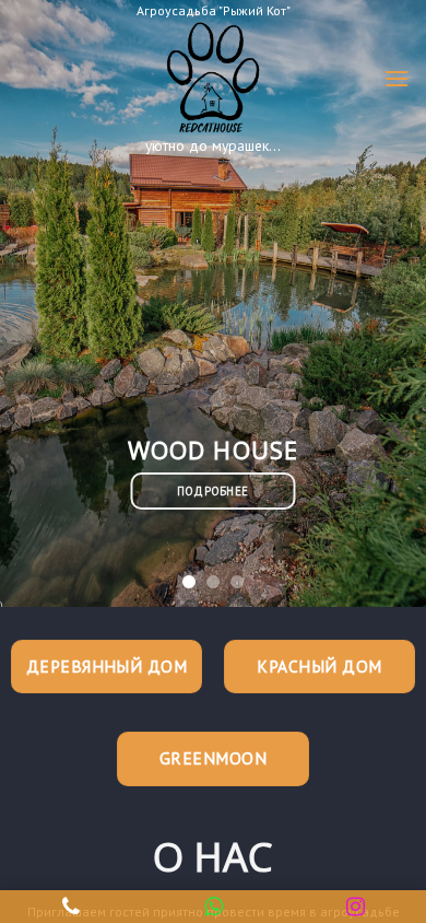| AI-анализ | ---  This online resource belongs to a rural estate named "РЫЖИЙ КОТ" (Ryzhij Kot), offering rest and relaxation in Minsk, Belarus. The website provides information on three wooden and red houses, each equipped with swimming pools on their territories. The estate is situated near the ski resort Silichi and is about 20 km away from Minsk. The peaceful and picturesque location, adjacent to a large lake and forest, offers a comfortable and enjoyable stay for visitors.  The wooden house includes five bedrooms and two relaxation rooms, allowing for accommodation of up to 10 people (maximum 12). The estate features a traditional Russian sauna, heated by wood, and an outdoor hot tub under the open sky, providing unique sensations all year round. A fireplace in the house creates a festive and cozy atmosphere.  The red |