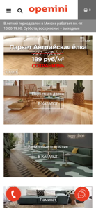 | AI-анализ | This website is for Openini, a flooring and door salon based in Minsk and Grodno, Belarus. The company offers various flooring options including parquet and parquet flooring, vinyl floors, laminate, and interconnected doors from top global brands. The website includes information about the stores' operating hours, phone numbers, and addresses in Minsk and Grodno. It also features an online shopping section with separate hours and contact information. The website is available in Russian rubles and Belarusian rubles. The main categories of products include parquet flooring, vinyl floors, laminate, carpets, sports floors, and related accessories such as adhesives, paints, and maintenance tools. There are sections for sales, promotions, and a catalog for each product category. The website also includes a FAQ section for customers, as well as information about |