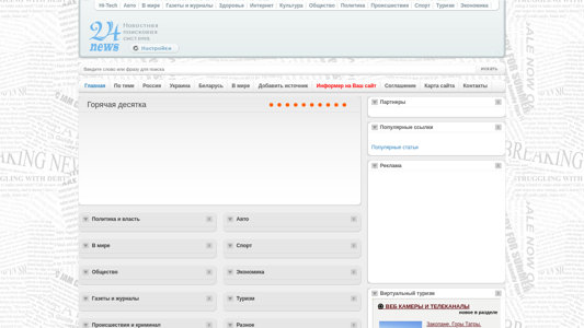 | AI-анализ | This website, titled 'Дайджест новостей 24-news.by', is a news aggregator featuring top stories from various categories including Hi-Tech, Auto, World, Gazettes and Journals, Health, Culture, Society, Politics, Proисшествия (Proисшествия translates to 'incidents' in English), and Sport, among others. The top words on the site include 'мире' (world), 'туризм' (tourism), 'новостей' (news), 'сайта' (site), 'газеты' (newspapers), 'журналы' (magazines), 'здоровье' (health), 'общество' (society), 'политика' (politics), and 'происшествия'. The site offers options to drop the |
