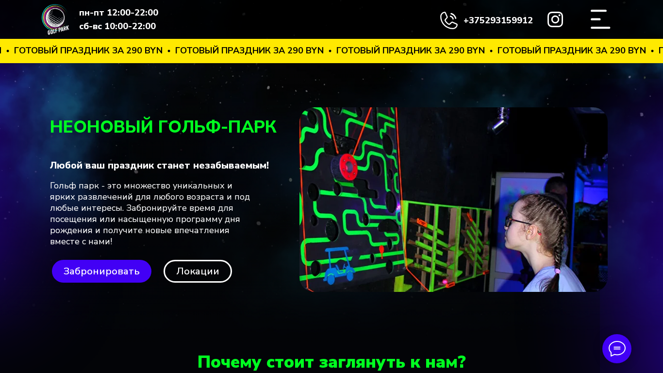 | Ключевые слова | день рождения в Минске мини-гольф неоновый развлечения семейный отдых аренда виртуальная реальность ведущий |