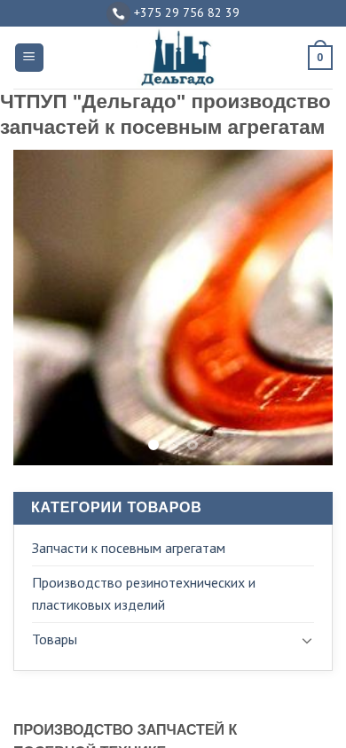 | AI-анализ | --- The web project "Дельгадо Запчасти к посевным агрегатам, сеялкам | Дельгадо" is a Belarusian e-commerce website specializing in the production and sale of parts for agricultural equipment and seeders. The website's main categories include parts for agricultural machinery, production of rubber and plastic products, asbestos-containing items, and various types of shafts, rings, and bearings. The homepage features a catalog of products, with subcategories such as "Podshipniki sharikovye radial'nye odnoraydnye s uplotneniiamy" (radial open bearings with bushings) and "Konel'niki dlya podshipnikov" (bearing mounts). The website also offers industrial textiles, rubber belts, hoses, |