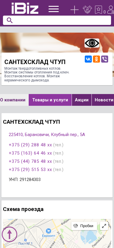 SEO-описаниеСАНТЕХСКЛАД ЧТУП - Монтаж твердотопливных котлов. Монтаж системы отопления под ключ. Восстановление котлов. Монтаж керамического дымохода.. Схема проезда, контактные телефоны, адрес компании САНТЕХСКЛАД ЧТУП. 225410, Барановичи, , Клубный пер., 5А