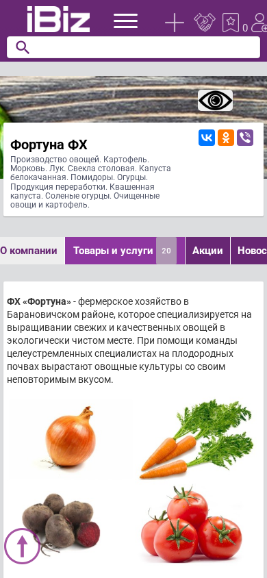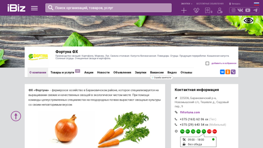 | AI-анализ | This website is a farming business, Fortuna FH, located in Novomyshsky district, producing various vegetables including carrots, potatoes, beetroot, cabbage, tomatoes, cucumbers, and processing some of these vegetables into pickled cabbage and salted cucumbers. The address is 225336, Techevle d., Sadovy per., 9. |