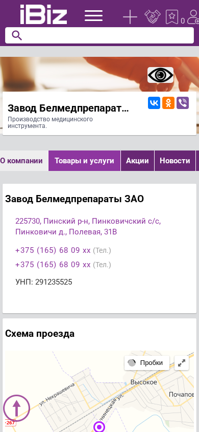 | Название / Заголовок | Завод Белмедпрепараты ЗАО - Производство медицинского инструмента. . 225730, , Пинковичский с/с, Пинковичи д., Полевая, 31В |