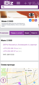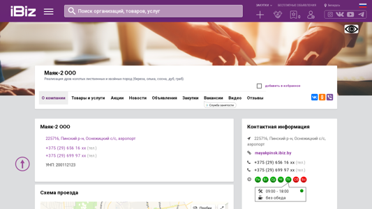 | AI-анализ | The web project "Mayak-2 OOO" is a Belarusian company specializing in the sale of firewood made from various tree species, including birch, elm, pine, oak, and ash. The website provides a scheme for reaching the company, as well as contact phone numbers. The company's UNP number is 200112123. The working hours are Monday to Friday from 9:00 to 18:00, without lunch breaks. The company is located in the Osnezhitsky district, near the airport. The website also includes sections for company information, products and services, news, announcements, vacancies, and customer reviews on social media platforms such as VKontakte and Odnoklassniki. The site also offers a Viber account for customers to contact the company. |