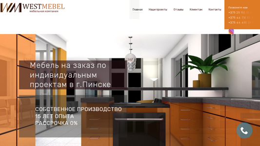 | AI-анализ | --- The website westmebel.by is for a custom furniture manufacturing company named Вестмебель located in Pinsk, Belarus. The company specializes in producing individual projects for various types of furniture, including kitchens, wardrobes, living rooms, bedrooms, offices, and furniture groups. Customers can choose from a range of modern and classical designs made from natural wood. The website features a description of the production process, from consultation with designers to project development, pricing, payment, and delivery and installation. The company offers a wide variety of products, all made to order according to individual specifications and preferences. Clients can visit the showroom to view samples of various furniture styles. The site also includes sections for customer testimonials and contact information. Keywords related to the site include 'furniture', 'production', 'kitchens', 'wardrobes', 'living rooms', 'bed |