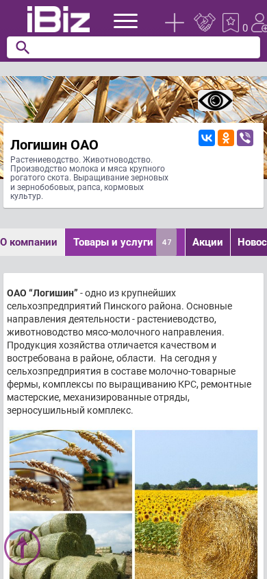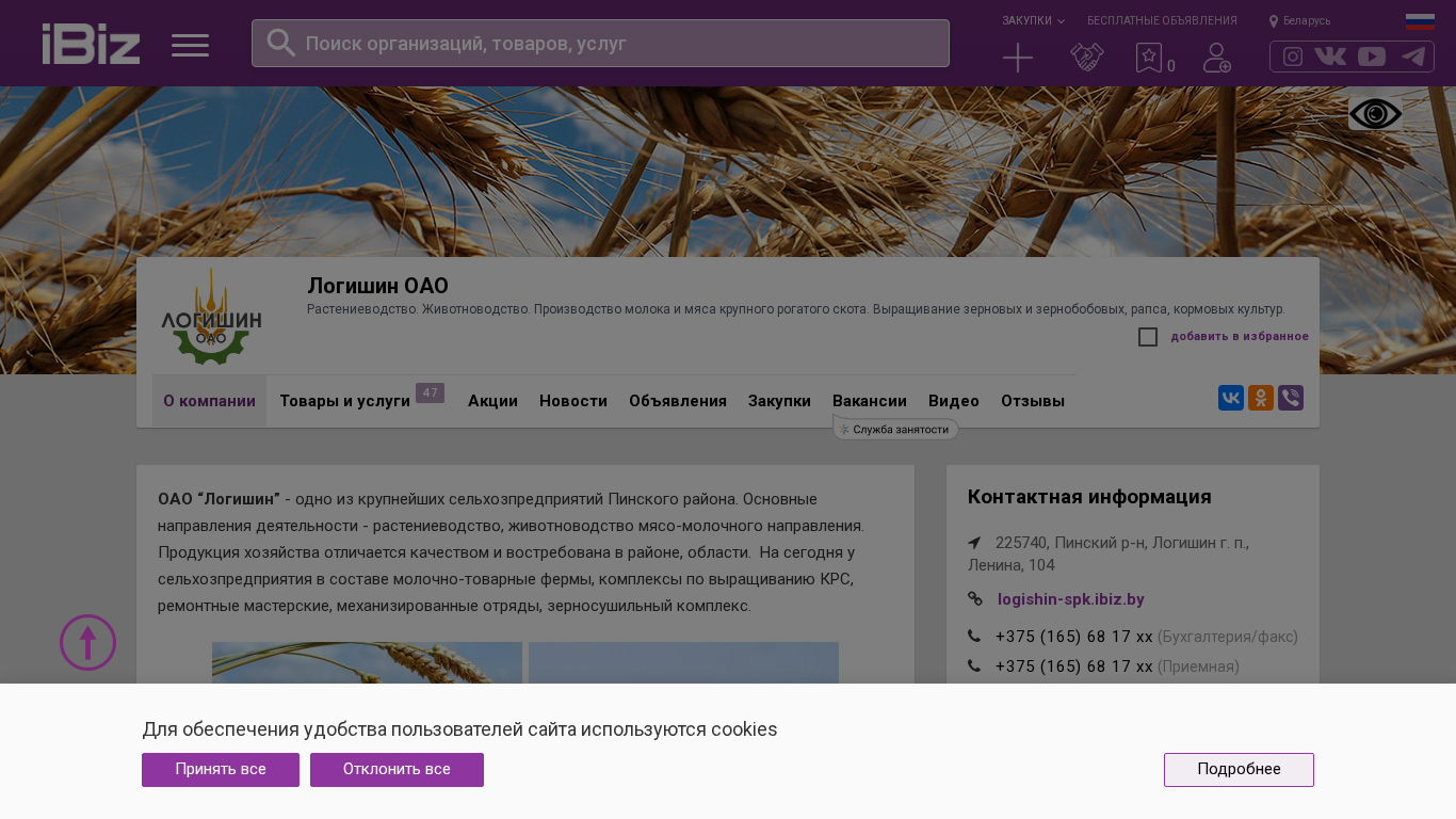 Название / Заголовок | Логишин ОАО - Растениеводство. Животноводство. Производство молока и мяса крупного рогатого скота. Выращивание зерновых и зернобобовых, рапса, кормовых культур.. 225740, , Логишин г. п., Ленина, 104 |