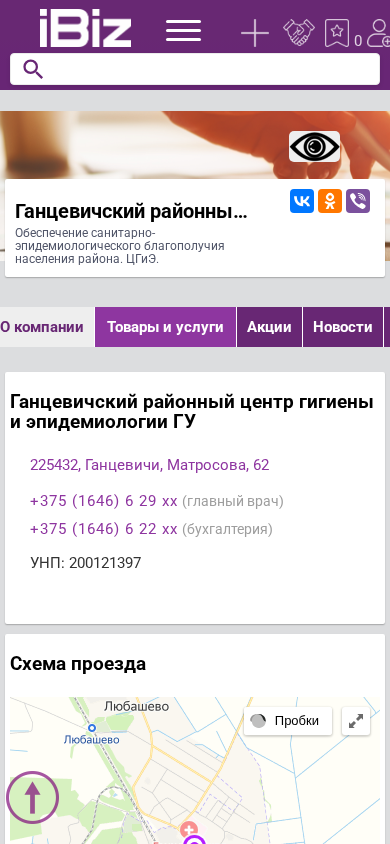 | AI-анализ | The website is for the Ganetschytskiy district center for hygiene and epidemiology under the GU provision of sanitary-epidemiological well-being of the population in the district. The address is listed as 225432, Gantsevichi, Matrosova, 62. The website provides contact information for the center, including phone numbers for the main doctor and the accounting department. The company's UNP number is 200121397. The website also includes a map for directions and operates from Monday to Friday, 8:00 AM to 5:00 PM with a break from 1:00 PM to 2:00 PM. The company is listed under the category of sanitary-epidemiological stations. |