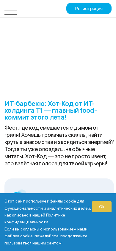 The portal T1-Hot-Code is a website dedicated to the IT-Barbecue: Hot-Code event, organized by IT-holding T1. The event promises a day filled with hardcore lectures from top speakers, live music, local artists, street food, networking opportunities, memes, challenges, and raffles. The target audience includes experienced developers, analysts, students, and those starting a career in IT. Registration is required to attend, with limited seats available. The event takes place on June 7th from 10:00 AM to the last byte on the best street in town. The website also features a mobile application and a FAQ section to provide more information.