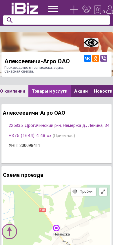 | Название / Заголовок | Алексеевичи-Агро ОАО - Производство мяса, молока, зерна. Сахарная свекла. . 225835, , Немержа д., Ленина, 34 |